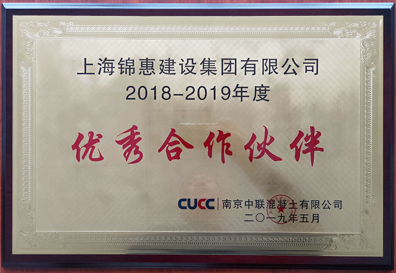 5月16日,上海錦惠建設集團有限公司榮獲中國建材南京中聯(lián)混凝土公司“2018-2019年度優(yōu)秀合作伙伴”榮譽(yù)稱(chēng)號,錦惠集團材料公司總經(jīng)理朱家明、南京白金漢爵項目部負責人賴(lài)偉華代表公司在南京中聯(lián)公司領(lǐng)取了榮譽(yù)獎牌。