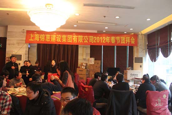 2012年1月14日,上海錦惠建設集團有限公司2012年春節團拜會(huì )在旗下的嘉軒大酒店隆重舉行。集團總部全體員工、各子公司、分公司、項目部負責人等一百余人歡聚一堂,共慶新春佳節。