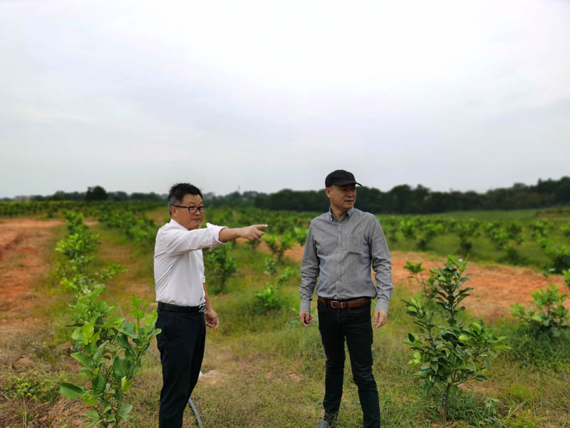 (賴(lài)富榮董事長(cháng)現場(chǎng)查看首期柚子樹(shù)苗種植基地)